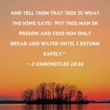 and tell them that this is what the king says: 'Put this man in prison and feed him only bread and water until I return safely.'"
