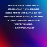 And the king of Israel said to Jehoshaphat, "I will disguise myself and go into battle, but you wear your royal robes." So the king of Israel disguised himself and went into battle.