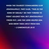 When the chariot commanders saw Jehoshaphat, they said, "This is the king of Israel!" So they turned to fight against him, but Jehoshaphat cried out, and the LORD helped him. God drew them away from him.