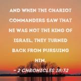 And when the chariot commanders saw that he was not the king of Israel, they turned back from pursuing him.