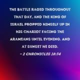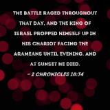 The battle raged throughout that day, and the king of Israel propped himself up in his chariot facing the Arameans until evening. And at sunset he died.