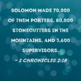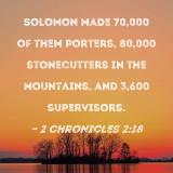 Solomon made 70,000 of them porters, 80,000 stonecutters in the mountains, and 3,600 supervisors.