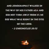 And Jehoshaphat walked in the way of his father Asa and did not turn away from it; he did what was right in the eyes of the LORD.