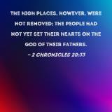 The high places, however, were not removed; the people had not yet set their hearts on the God of their fathers.