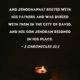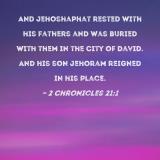 And Jehoshaphat rested with his fathers and was buried with them in the City of David. And his son Jehoram reigned in his place.