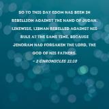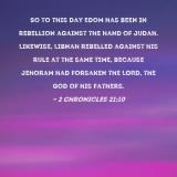 So to this day Edom has been in rebellion against the hand of Judah. Likewise, Libnah rebelled against his rule at the same time, because Jehoram had forsaken the LORD, the God of his fathers.