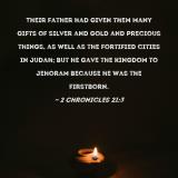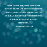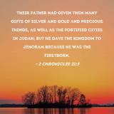 Their father had given them many gifts of silver and gold and precious things, as well as the fortified cities in Judah; but he gave the kingdom to Jehoram because he was the firstborn.