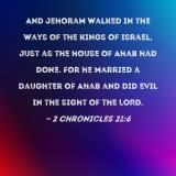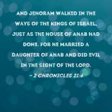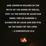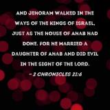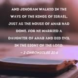 And Jehoram walked in the ways of the kings of Israel, just as the house of Ahab had done. For he married a daughter of Ahab and did evil in the sight of the LORD.