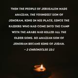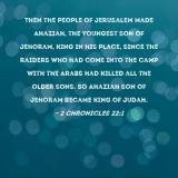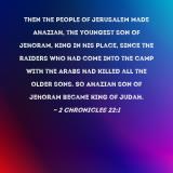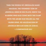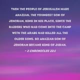 Then the people of Jerusalem made Ahaziah, the youngest son of Jehoram, king in his place, since the raiders who had come into the camp with the Arabs had killed all the older sons. So Ahaziah son of Jehoram became king of Judah.