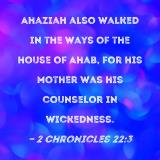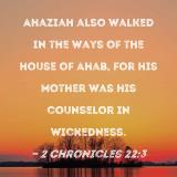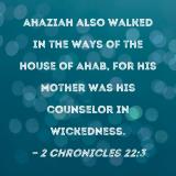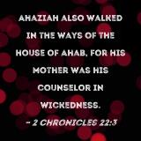 Ahaziah also walked in the ways of the house of Ahab, for his mother was his counselor in wickedness.