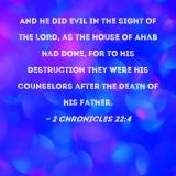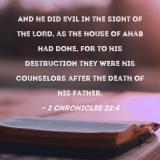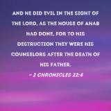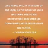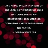 And he did evil in the sight of the LORD, as the house of Ahab had done, for to his destruction they were his counselors after the death of his father.