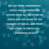 So they went throughout Judah and gathered the Levites from all the cities of Judah and the heads of the families of Israel. And when they came to Jerusalem,