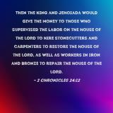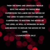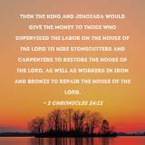 Pictures and Artwork Then the king and Jehoiada would give the money to those who supervised the labor on the house of the LORD to hire stonecutters and carpenters to restore the house of the LORD, as well as workers in iron and bronze to repair the house of the LORD. |