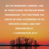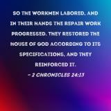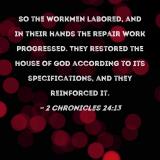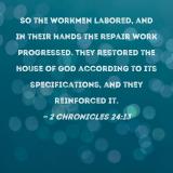 So the workmen labored, and in their hands the repair work progressed. They restored the house of God according to its specifications, and they reinforced it.