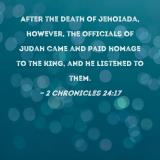 After the death of Jehoiada, however, the officials of Judah came and paid homage to the king, and he listened to them.