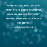 Nevertheless, the LORD sent prophets to bring the people back to Him and to testify against them; but they would not listen.