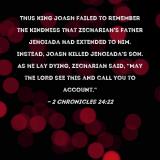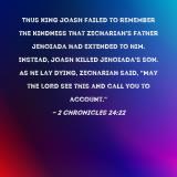 Thus King Joash failed to remember the kindness that Zechariah's father Jehoiada had extended to him. Instead, Joash killed Jehoiada's son. As he lay dying, Zechariah said, "May the LORD see this and call you to account."