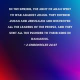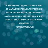 In the spring, the army of Aram went to war against Joash. They entered Judah and Jerusalem and destroyed all the leaders of the people, and they sent all the plunder to their king in Damascus.