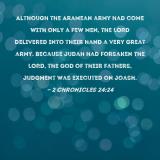 Although the Aramean army had come with only a few men, the LORD delivered into their hand a very great army. Because Judah had forsaken the LORD, the God of their fathers, judgment was executed on Joash.