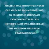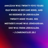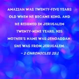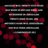 Amaziah was twenty-five years old when he became king, and he reigned in Jerusalem twenty-nine years. His mother's name was Jehoaddan; she was from Jerusalem.