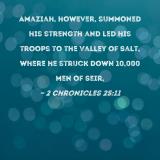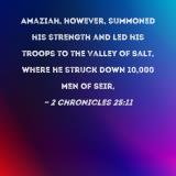 Amaziah, however, summoned his strength and led his troops to the Valley of Salt, where he struck down 10,000 men of Seir,