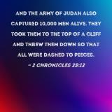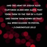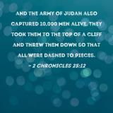 and the army of Judah also captured 10,000 men alive. They took them to the top of a cliff and threw them down so that all were dashed to pieces.