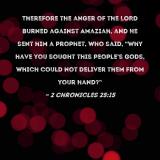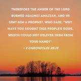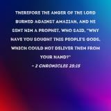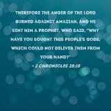 Therefore the anger of the LORD burned against Amaziah, and He sent him a prophet, who said, "Why have you sought this people's gods, which could not deliver them from your hand?"