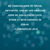 So Jehoash king of Israel advanced, and he and Amaziah king of Judah faced each other at Beth-shemesh in Judah.