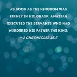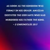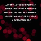 As soon as the kingdom was firmly in his grasp, Amaziah executed the servants who had murdered his father the king.