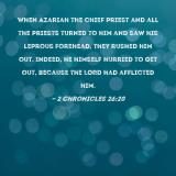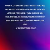 When Azariah the chief priest and all the priests turned to him and saw his leprous forehead, they rushed him out. Indeed, he himself hurried to get out, because the LORD had afflicted him.