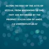 As for the rest of the acts of Uzziah, from beginning to end, they are recorded by the prophet Isaiah son of Amoz.