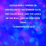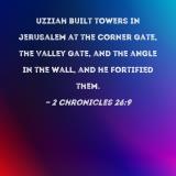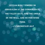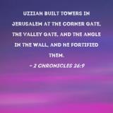 Uzziah built towers in Jerusalem at the Corner Gate, the Valley Gate, and the angle in the wall, and he fortified them.