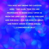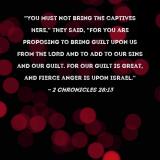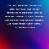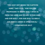 "You must not bring the captives here," they said, "for you are proposing to bring guilt upon us from the LORD and to add to our sins and our guilt. For our guilt is great, and fierce anger is upon Israel."