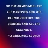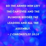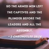 So the armed men left the captives and the plunder before the leaders and all the assembly.