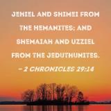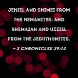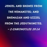 Jehiel and Shimei from the Hemanites; and Shemaiah and Uzziel from the Jeduthunites.