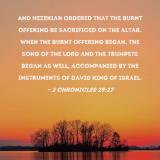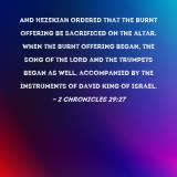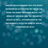 And Hezekiah ordered that the burnt offering be sacrificed on the altar. When the burnt offering began, the song of the LORD and the trumpets began as well, accompanied by the instruments of David king of Israel.