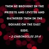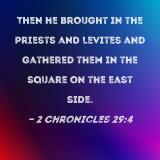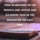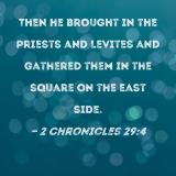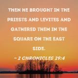 Then he brought in the priests and Levites and gathered them in the square on the east side.