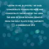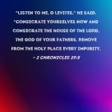 "Listen to me, O Levites," he said. "Consecrate yourselves now and consecrate the house of the LORD, the God of your fathers. Remove from the Holy Place every impurity.