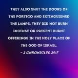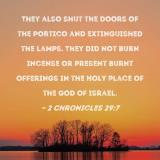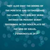 They also shut the doors of the portico and extinguished the lamps. They did not burn incense or present burnt offerings in the Holy Place of the God of Israel.