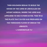 Then Solomon began to build the house of the LORD in Jerusalem on Mount Moriah, where the LORD had appeared to his father David. This was the place that David had prepared on the threshing floor of Ornan the Jebusite.