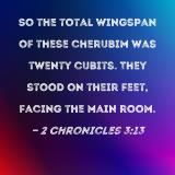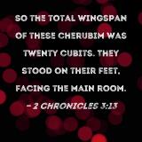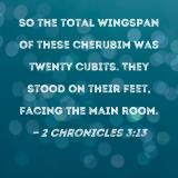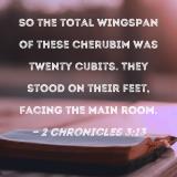 So the total wingspan of these cherubim was twenty cubits. They stood on their feet, facing the main room.