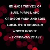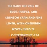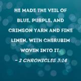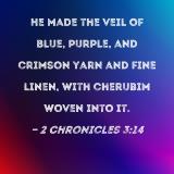 He made the veil of blue, purple, and crimson yarn and fine linen, with cherubim woven into it.