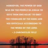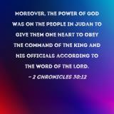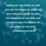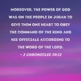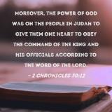 Moreover, the power of God was on the people in Judah to give them one heart to obey the command of the king and his officials according to the word of the LORD.