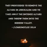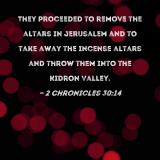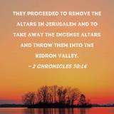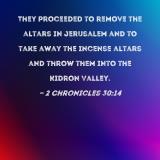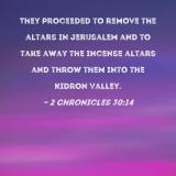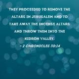 They proceeded to remove the altars in Jerusalem and to take away the incense altars and throw them into the Kidron Valley.