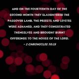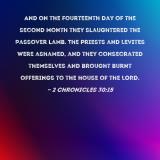 And on the fourteenth day of the second month they slaughtered the Passover lamb. The priests and Levites were ashamed, and they consecrated themselves and brought burnt offerings to the house of the LORD.