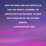 For the king and his officials and the whole assembly in Jerusalem had decided to keep the Passover in the second month,