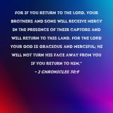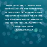 Pictures and Artwork For if you return to the LORD, your brothers and sons will receive mercy in the presence of their captors and will return to this land. For the LORD your God is gracious and merciful; He will not turn His face away from you if you return to Him." |