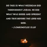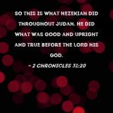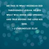 So this is what Hezekiah did throughout Judah. He did what was good and upright and true before the LORD his God.