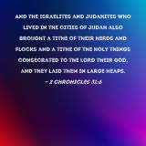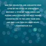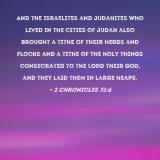 And the Israelites and Judahites who lived in the cities of Judah also brought a tithe of their herds and flocks and a tithe of the holy things consecrated to the LORD their God, and they laid them in large heaps.