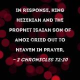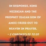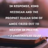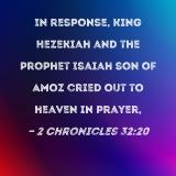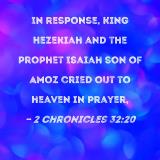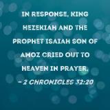 In response, King Hezekiah and the prophet Isaiah son of Amoz cried out to heaven in prayer,